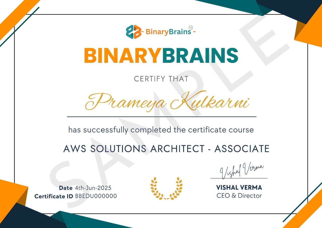 BinaryBrains offers an industry-aligned AWS training program designed for freshers and working professionals aiming to build real cloud skills and certification readiness.